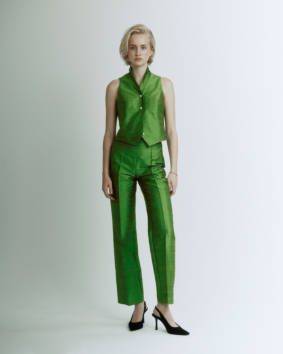 Connected Nature: Knöchellange Seidenhose mit Biesen
